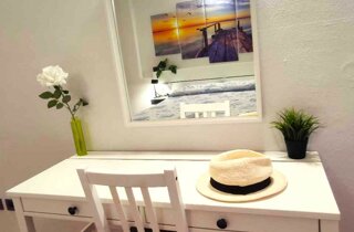 Ampio letto matrimoniale, guardaroba e scrivania per il massimo comfort.